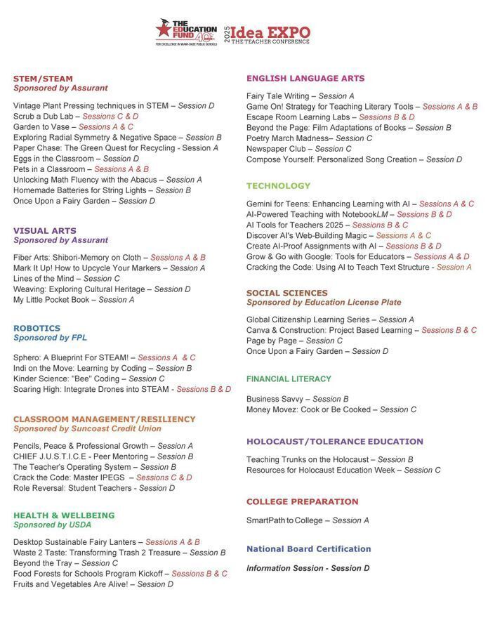 Ignite your passion for teaching at The Idea Expo —South Florida’s premier by-teachers, for-teachers conference! Each year, over 500 inspiring educators come together for a high-energy day of connection, collaboration, and creativity.